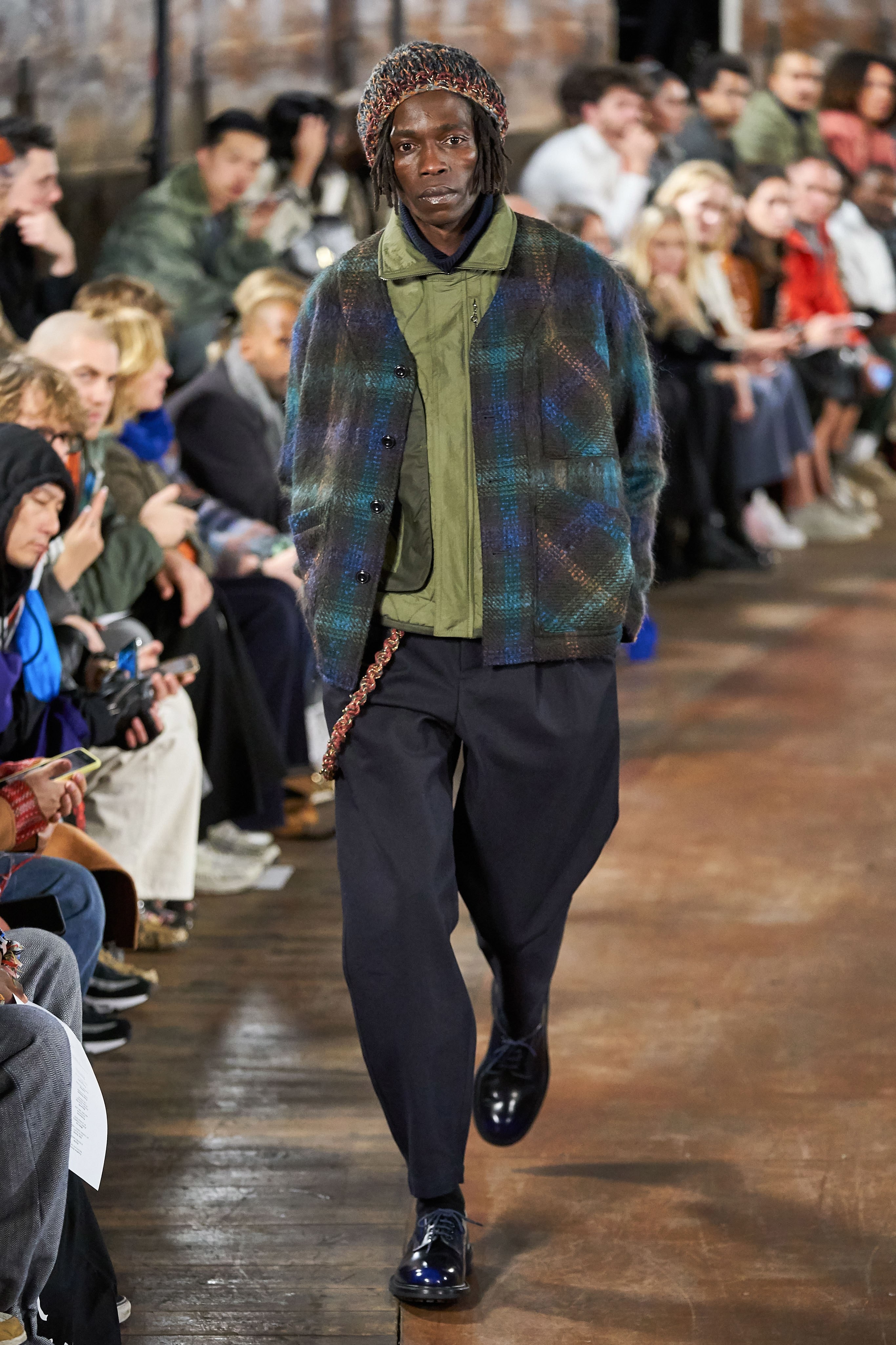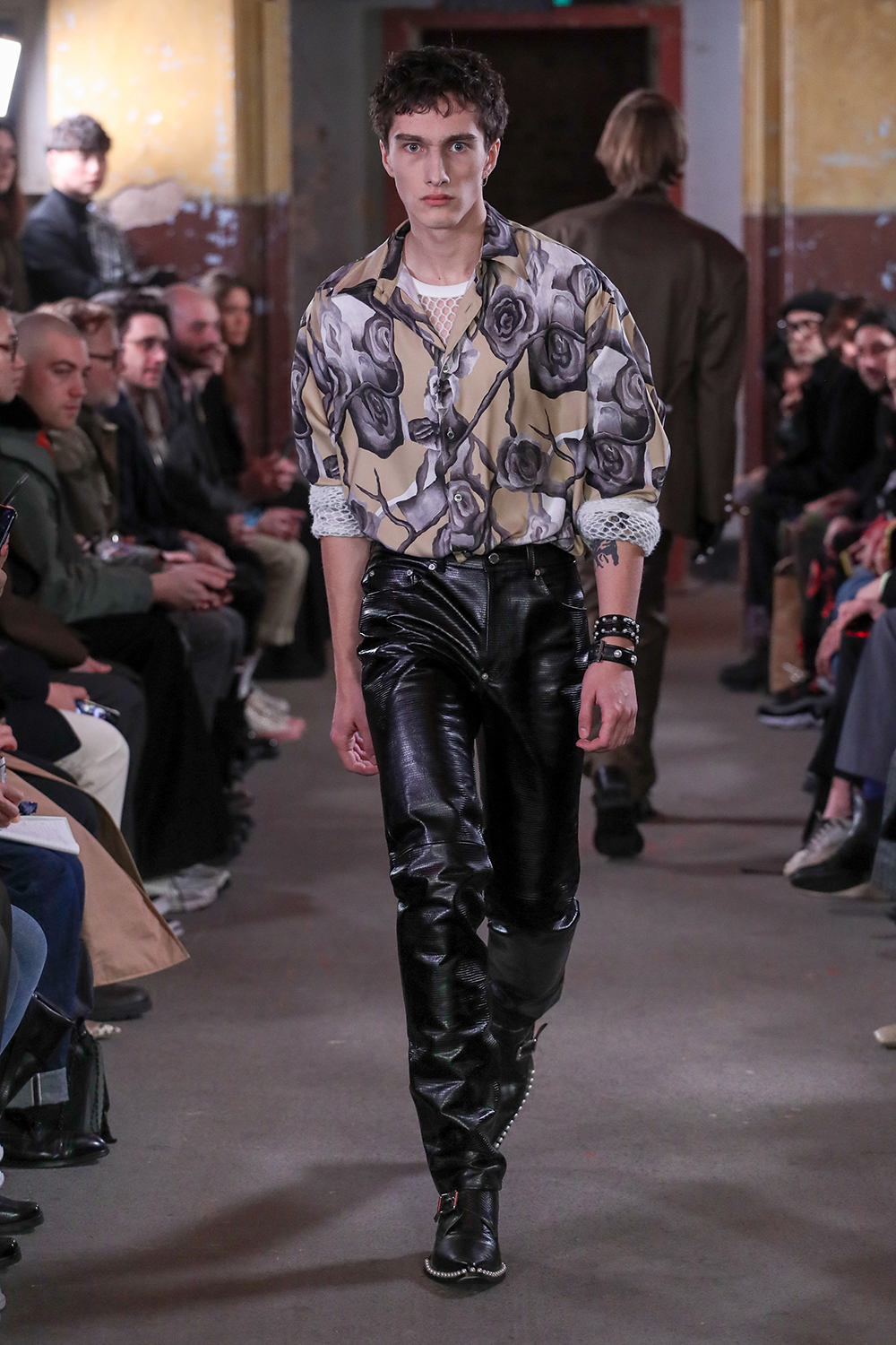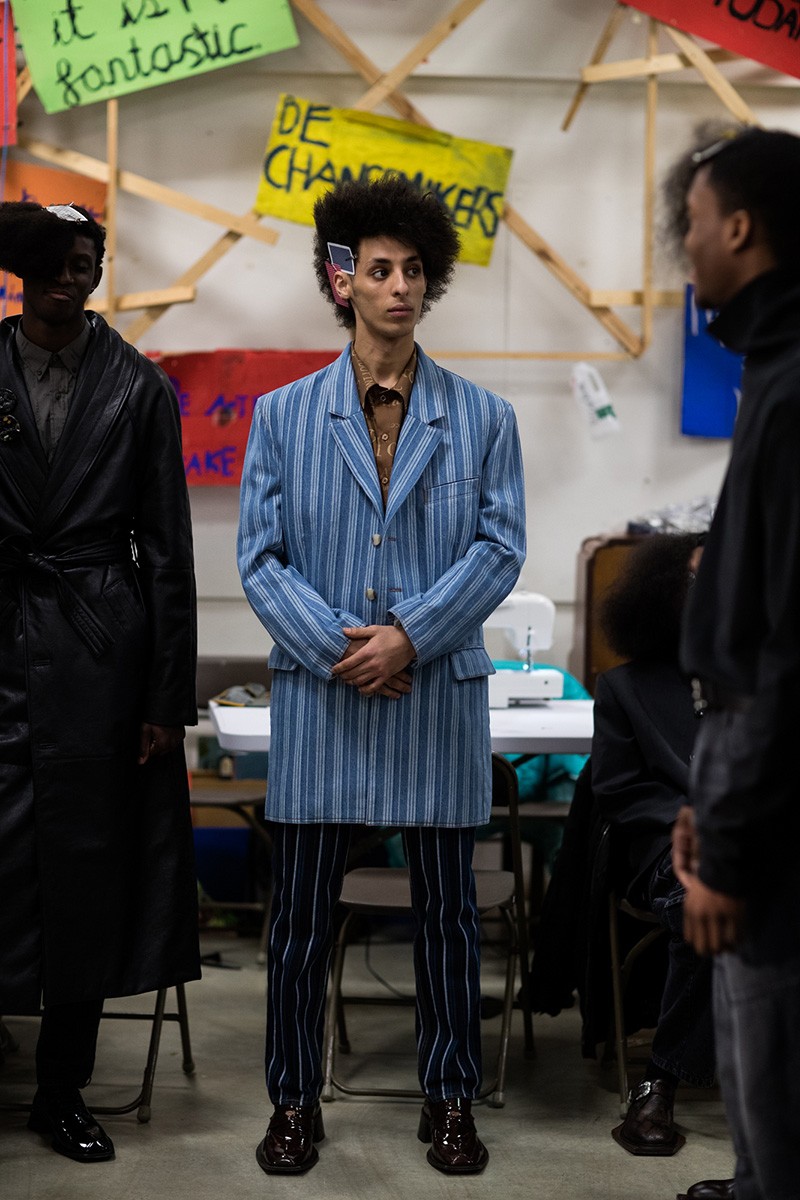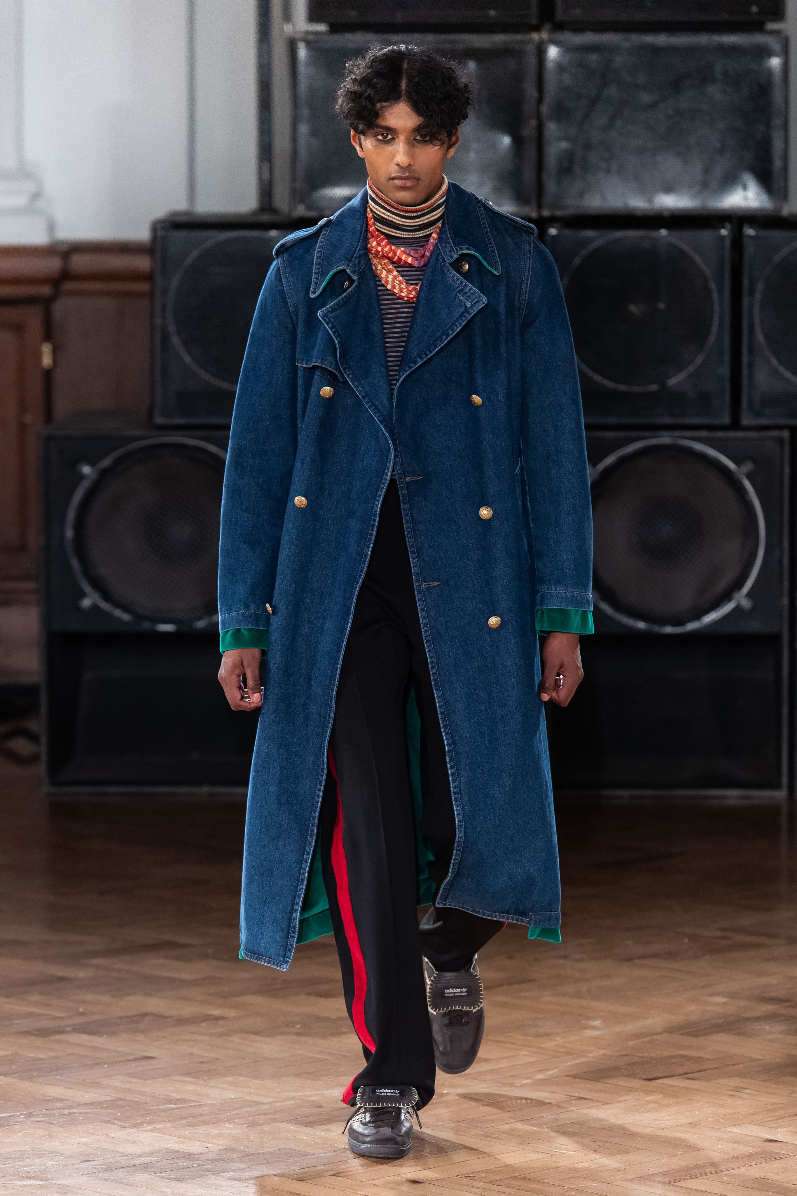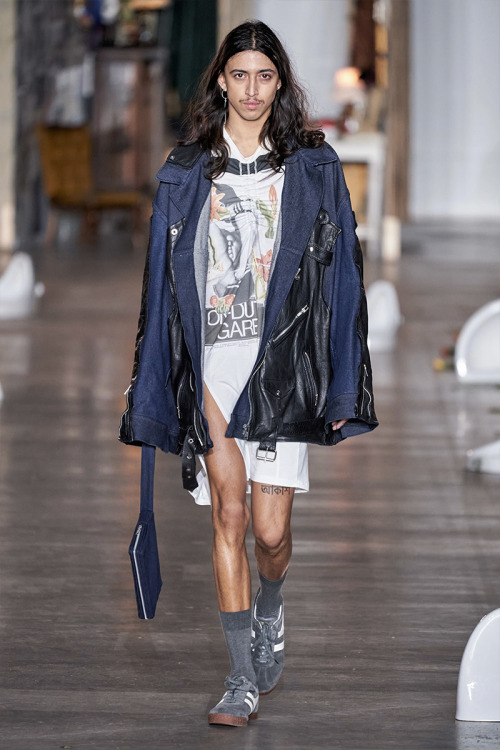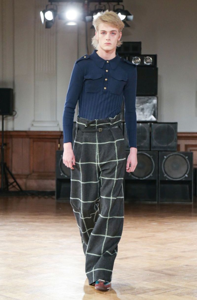 Con un vibe de los años 80’s muchas de las prendas tienen ese aire grunge que nos encantan, con una paleta de colores entre los azules y olivos, pero de la cual nuestra prenda favorita son las botas altas, ¡sí! botas altas masculinas.