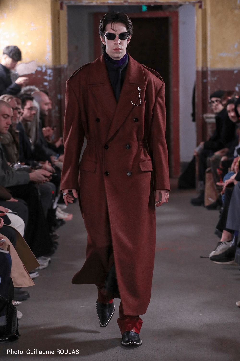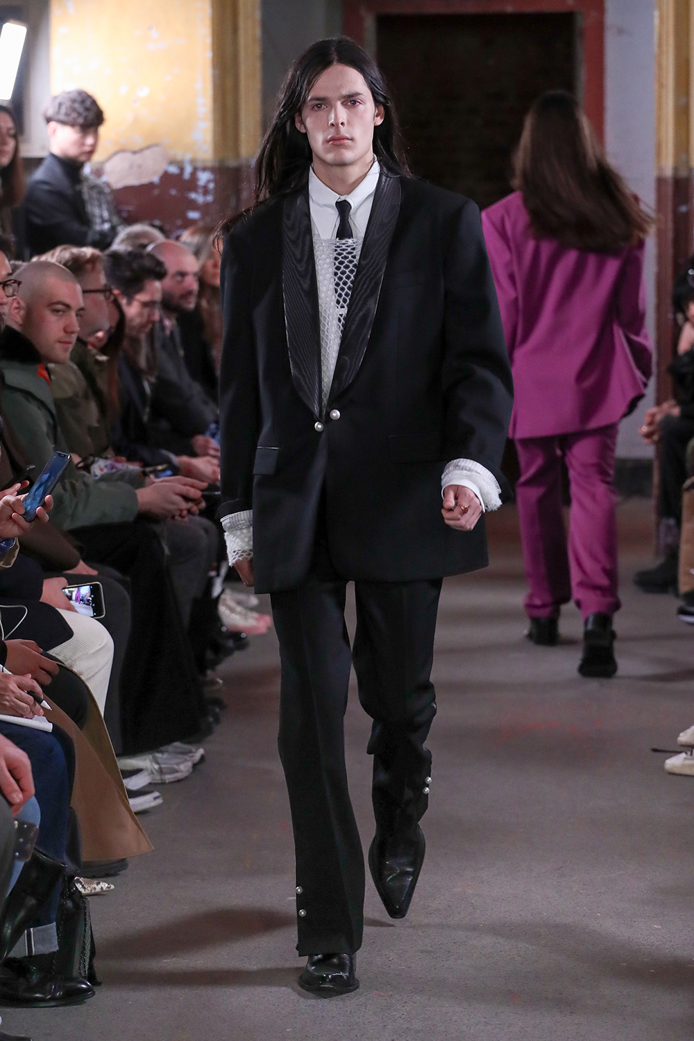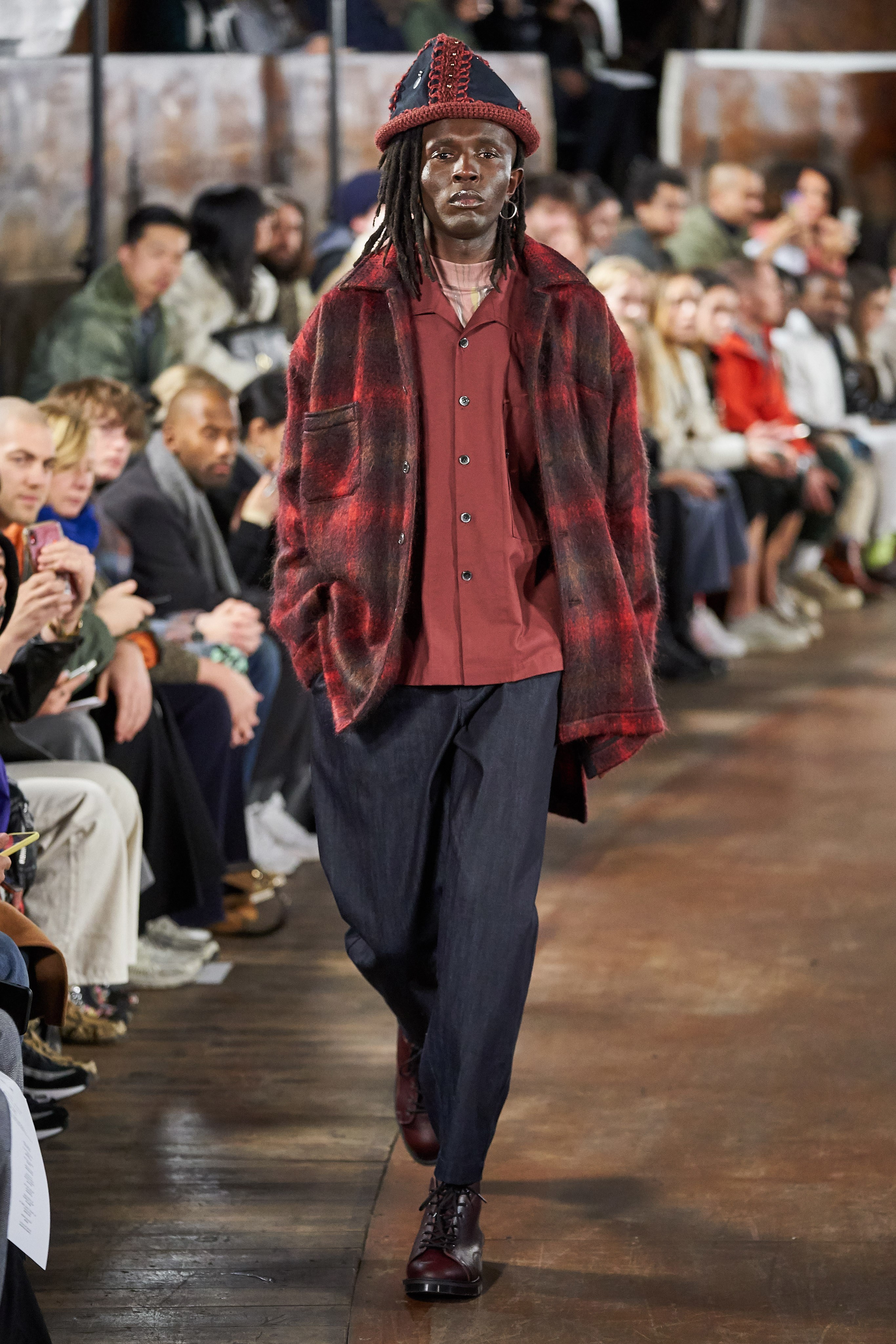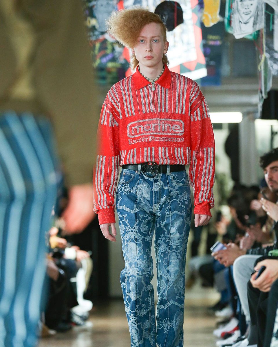 Vestidos masculinos, sí, esa es la propuesta de esta marca para el otoño/invierno masculino, aunque también encontramos mucha mezclilla y prints llamativos, pero sin duda los accesorios de esta colección son lo mejor de todo, coronas hechas de lapices que emulan la corona de espinas usada por Jesús de acuerdo a la tradición cristiana.