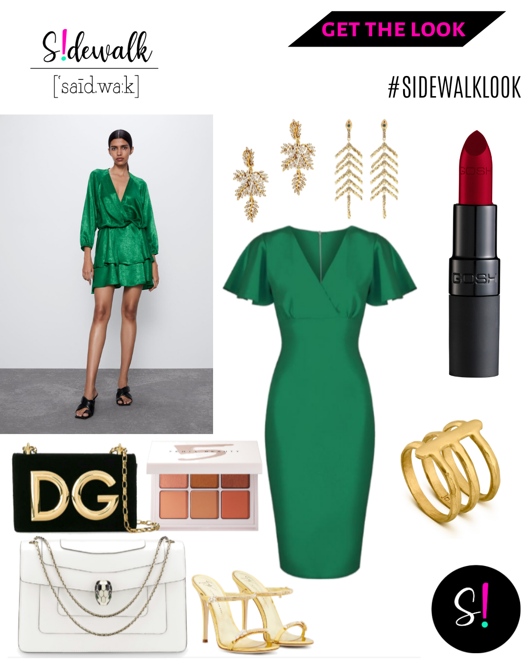 El look: logralo con un vestido estilo midi en color verde botella, una cartera de correa en color negro o blanco, accesorios con cristales en color dorado, sandalias de tacón doradas y un maquillaje donde des protagonismo a tus labios con un labial en color granate.